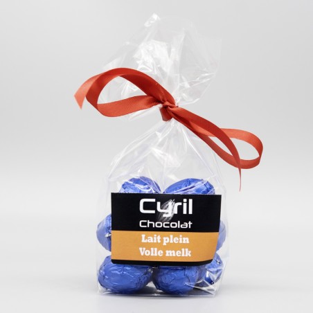 Sachet de 100 grammes de petits œufs au chocolat au lait plein, en toute simplicité.