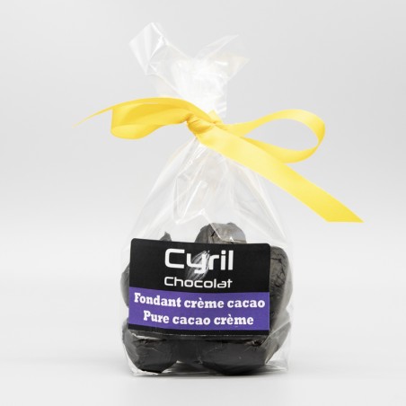 Sachet de 100 grammes de petits œufs au chocolat fondant, fourrés d'une ganache au cacao forte en chocolat.